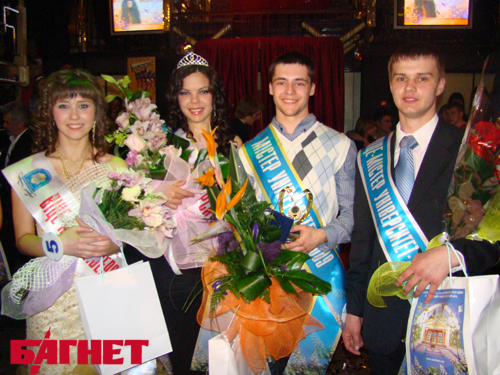 Победители конкурса (слева направо): «Вице-мисс Университет» Марта Яцишин, «Мисс Университет 2009» Маргарита Слесарева, «Мистер Университет 2009» Евгений Шилов, «Вице-мистер Университет» Александр Малюк