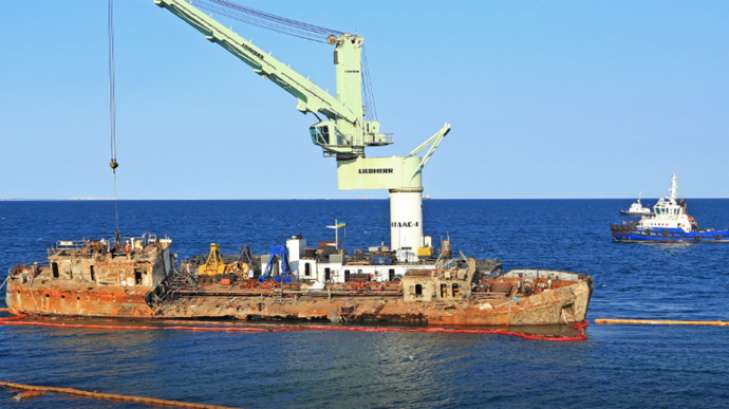 "В ходе операции компания "Краншип" совершила герметизацию пробоин корпуса танкера, прежде всего правого борта, откачала около 300 тонн песка и ила, а также вырезала и удалила с борта аварийного судна до 50 тонн металлоконструкций", - рассказал Иванов.