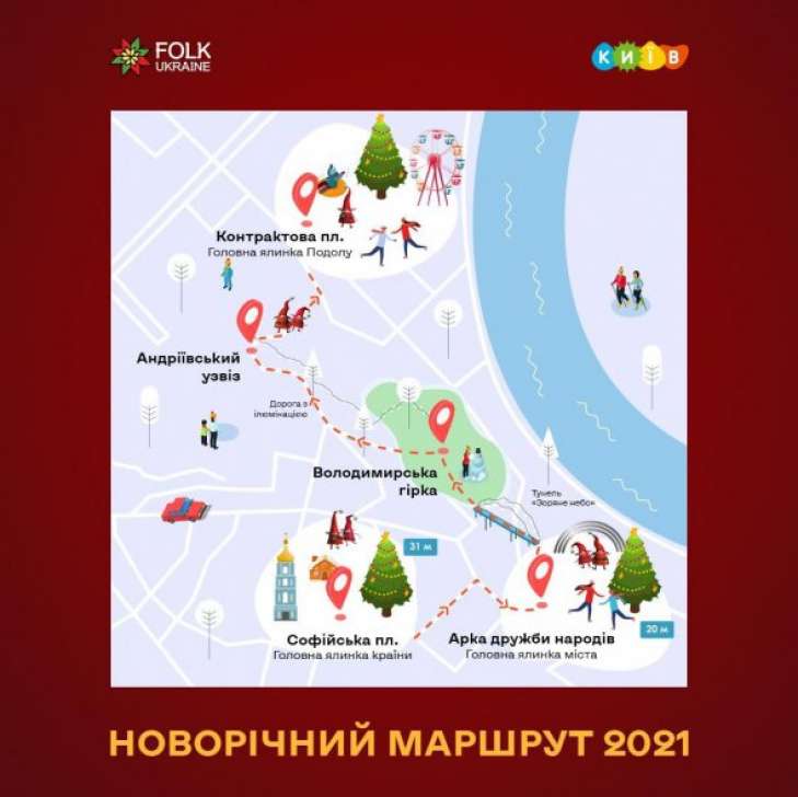 Новогодний пешеходный маршрут в Киеве будет состоять из 7 локаций. Его общая протяженность в обе стороны 8 км.