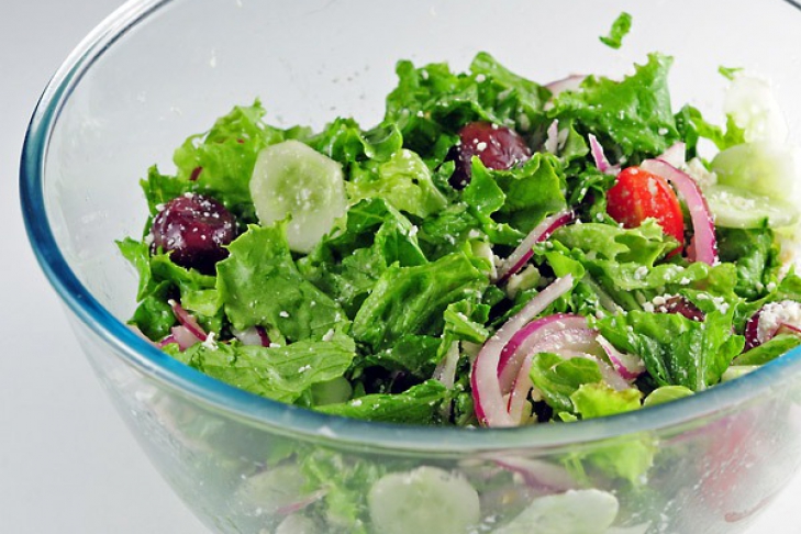 Как рассказала в своем письме в журнал «Едим со вкусом» Анна Плетнева из Симферополя, этот «Салат можно сделать на скорую руку где-нибудь в лесу или на берегу моря». Для его приготовления потребуется: 2 луковицы синего ялтинского лука, 1 банка зеленых маринованных оливок без косточек, 300 г шампиньонов, 250 г брынзы.