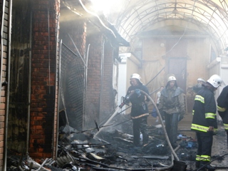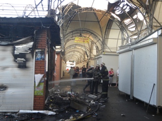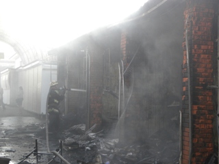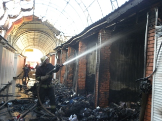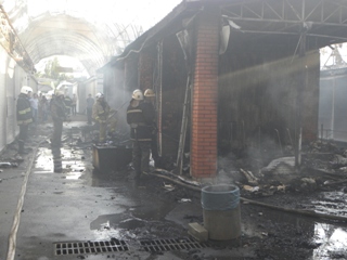 Огнем уничтожено четыре бутика и имущество их владельцев, кроме того, еще два бутика повреждены.