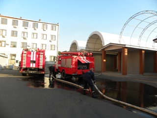 Через 5 минут на месте происшествия уже работало пять пожарно-спасательных подразделений города. На время их прибытия, четыре киоска уже полностью охватило пламя. Из-за высокой температуры и большой загрузки горючими материалами, огонь очень быстро распространялся.
