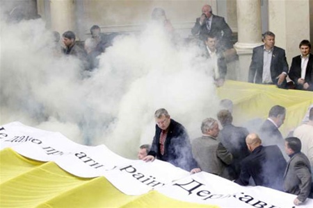 Ратификация Харьковских соглашений надолго запомнится украинцам зрелищным противостоянием парламентариев. В ход тогда пошли не только кулаки, но даже дымовые шашки.