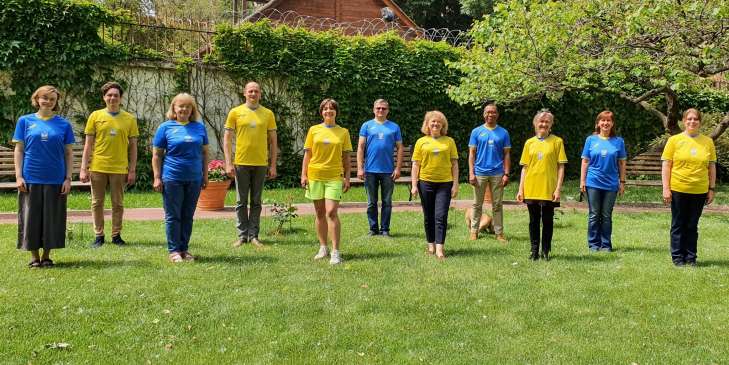 Сотрудники посольства Великобритании в Украине сфотографировались в футболках национальной сборной по футболу.