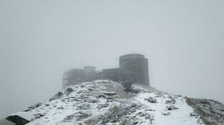 На горе Поп Иван Черногорский также падает снег, облачно и туман. Температура воздуха -1 °С. Высота горы - 2 028 м, она находжится на границе Ивано-Франковской области с Закарпатской.
