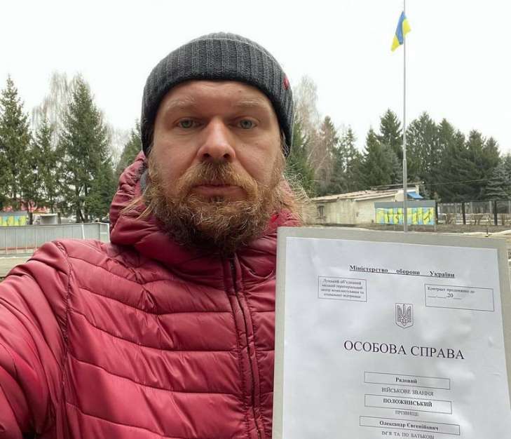 Украинский музыкант, экс-лидер группы "Тартак" Александр Положинский подписал контракт на прохождение военной службы в резерве ВСУ.