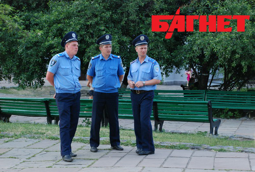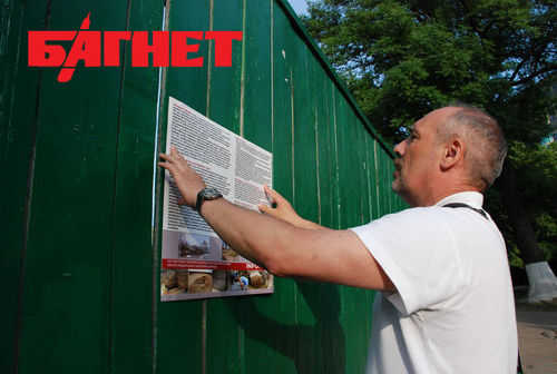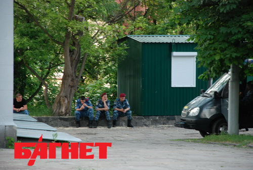 Милиции, надо сказать, мало. Три человека. Меньше чем охранников возле скандальных строительных вагончиков, установка которых возле Десятинки и вызвала новый виток конфликта вокруг нее. Милиционеры вяло просмотрели разрешение на проведение акции протеста и убедились в том, что на территории музея никаких «протестных» стендов не будет (стенд позже поставили в начале Пейзажной Аллеи, возле ограждения музея). Как стража вагончиков, так и милиционеры особо не возражали против того, что мы их фотографировали.