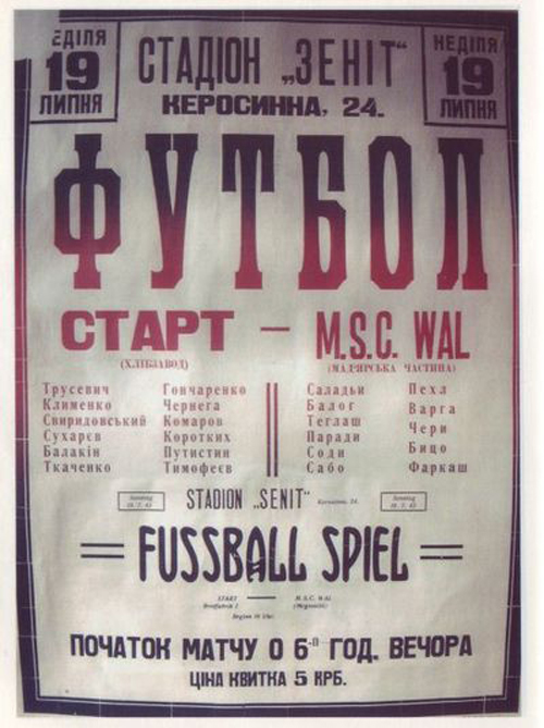 Уже сегодня в столице стартуют съемки российско-украинского фильма «Матч» с Сергеем Безруковым в главной роли — о поединке, сыгранном в оккупированном немцами Киеве летом 1942 года между советской командой «Старт» (часть игроков была из киевского «Динамо») и немецкой «Флакельф» (сборная состояла из солдат и офицеров противовоздушной обороны, а также летчиков и механиков киевского аэродрома). Та игра вошла в историю под названием «Матч смерти»: часть наших игроков, за отказ «слить» немцам игру, была вскоре расстреляна, сообщает «Сегодня».