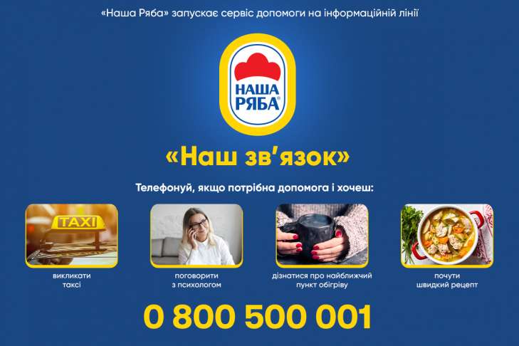 "Наша Ряба" запустила унікальну лінію підтримки "Наш зв’язок": консультація психолога, виклик таксі, пункти обігріву, швидкий рецепт