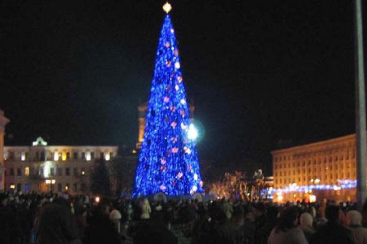 Новогоднюю елку на Майдане Незалежности в Киеве зажгли 23 декабря 2007 года. Ее высота составила 35 метров.Елку скомбинировали из 300 деревьев различной высоты.