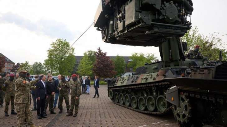 Володимир Зеленський та Олаф Шольц ознайомилися з елементами навчання, а також оглянули зразки німецької військової техніки, на якій тренуються українські військовослужбовці і яка постачається до України.
