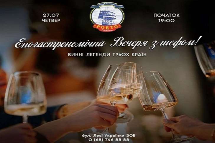 У четвер, 27 липня, о 19:00 у Києві на Печерську у ресторані Porto Maltese відбудеться еногастрономічна вечеря з шефом «Винні легенди трьох країн».