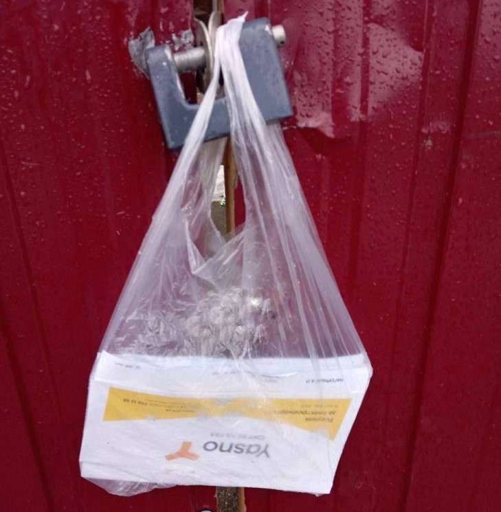 Мешканцям будинку, зруйнуваного російською ракетою влітку, принесли рахунки на електроенергію. На паркані, що огороджує зруйновану багатоповерхівку залишили пакуночок з рахунками.