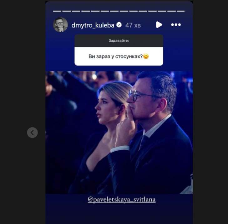 Также Кулеба, отвечая на вопрос, как отдыхает от работы, в первом варианте назвал время с любимой.