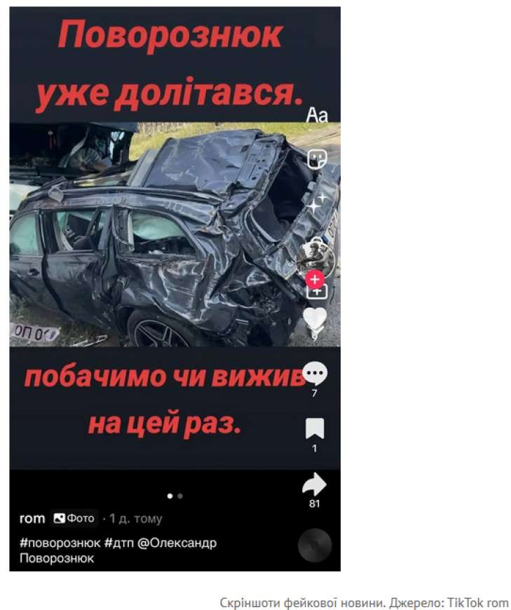У соцмережах поширилася неправдива інформація про смерть Олександра Поворознюка та співачки Жанни Лтавської в ДТП. Насправді обидва живі та продовжують свою діяльність.
