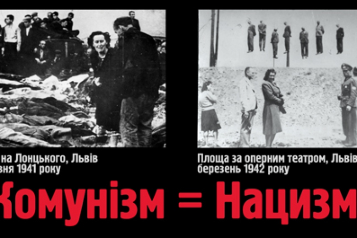 Сегодня, 22 июня, Львовский городской совет разместил в городе социальную рекламу - бигборды черного цвета с надписью красным цветом «Коммунизм = Нацизм».