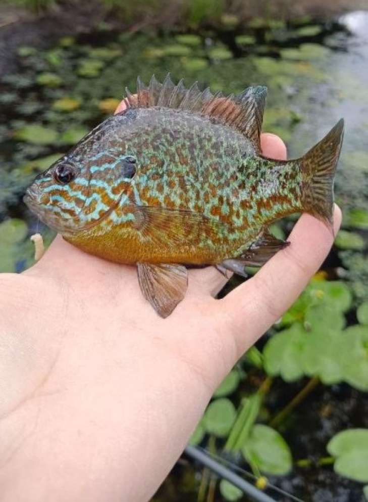 30 червня рибалка Давид Демчук здійснив улов, який викликав занепокоєння серед експертів. На поплавкову вудку він спіймав сонячного окуня – яскраву, красиву, але надзвичайно небезпечну для українських водойм рибу. Про це повідомили в місцевому пабліку. Трофей мав виразне забарвлення з відтінками зеленого, бірюзового та коричневого, прикрашене синіми смугами та плямами. Рибалка розповів, що впіймав цю рибу у спортивно-розважальному комплексі "X-Park" у київському парку Муромець.