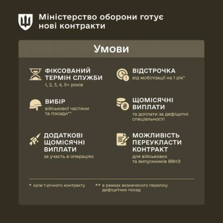 – Мы отвечаем на ключевой запрос военных, их семей и общества. Новые контракты — это о справедливости и предсказуемости. Работаем с правительством, Министерством финансов и партнерами, и в ближайшее время анонсируем все дополнительные детали. Благодарим всех защитников и защитников, которые борются ради Украины и будущего", — сообщил министр.