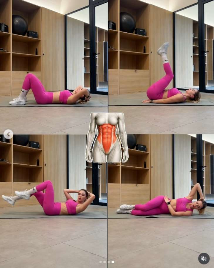 Потім перейдіть до "велосипеда" - по черзі тягніть лікоть до протилежного коліна, імітуючи крутіння педалей. Завершіть боковими скручуваннями - тягніться плечем до стегна збоку, щоб активувати косі м'язи живота.