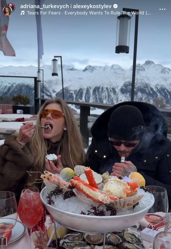 Поки країна збирає по гривні на дрони, подружжя транслює кадри з вишуканими плато морепродуктів та альпійськими краєвидами, чергуючи це з виступами на DJ-сетах у Буковелі з яких жодної копійки не було передано на потреби ЗСУ.
