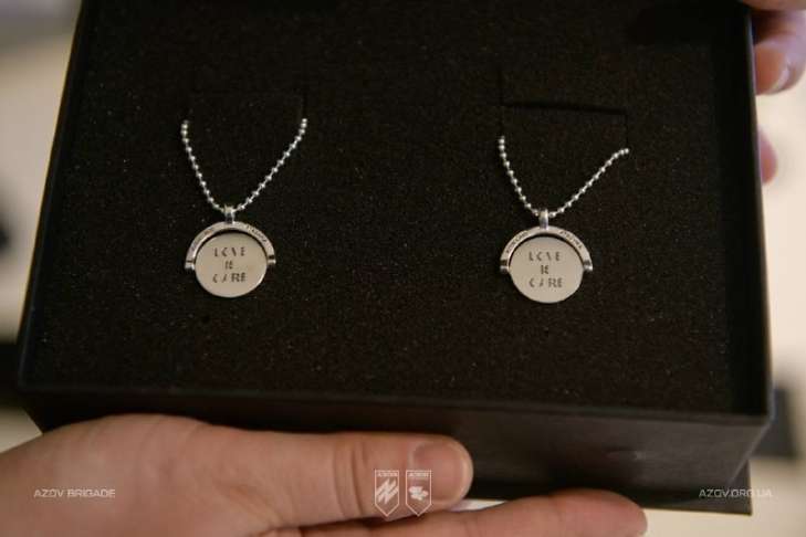 На знак вдячності за підтримку України герцогу та герцогині Сассекським вручили символічний подарунок від імені АЗОВ. Супровід – прикраси Love is care, що в перекладі: “Любов це турбота”, повідомляє 1-й корпус НГУ “Азов”.