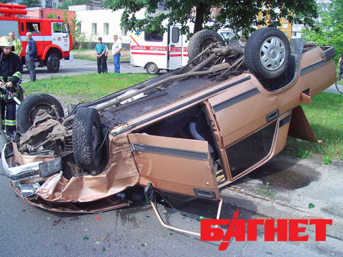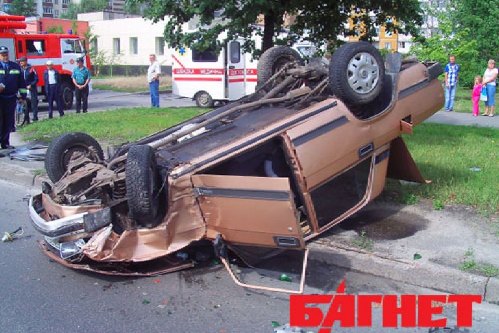 На Троещине, обгоняя маршрутку, перевернулся ВАЗ (ФОТО)
