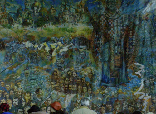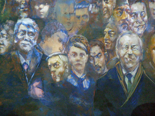 В нижней части полотна, «Багнет» рассмотрел изображения современных политических деятелей страны. Правда, не смотря на то, что портретное сходство с оригиналами условное, посетители узнают, кто именно изображен на картине.