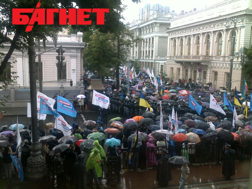 И правильно делали: противники пенсионки, потрясая фирменными флагами от «Батькивщины», не стали прорывать милицейские кордоны. После чего «сильные украинцы» расслабились, из динамиков полилась музыка, и парочки, а то и группки пикетчиков отлучались из рядов, чтобы прогуляться по знаменитому Мариинскому парку.