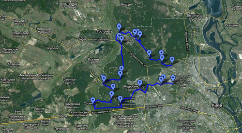 Киев – Беличи – р. Ирпень – Романовка – Горенка – Пуща – Виноградарь