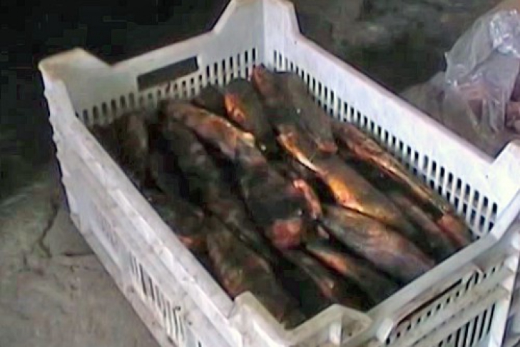 Поимо кальмаров на базе обнаружили сони ящиков с некачественными продуктами питания. Среди них: копченая рыба, томатная паста, консервированные грибы, тушенка. Судя по маркировке, срок годности некоторых продуктов закончился 3-4 года назад.