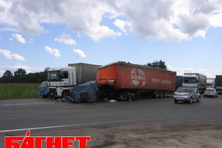 Около 7:00 утра на одном из перекрестков водитель позади идущей фуры «задумался» и пропустил момент, когда начала тормозить первая фура.