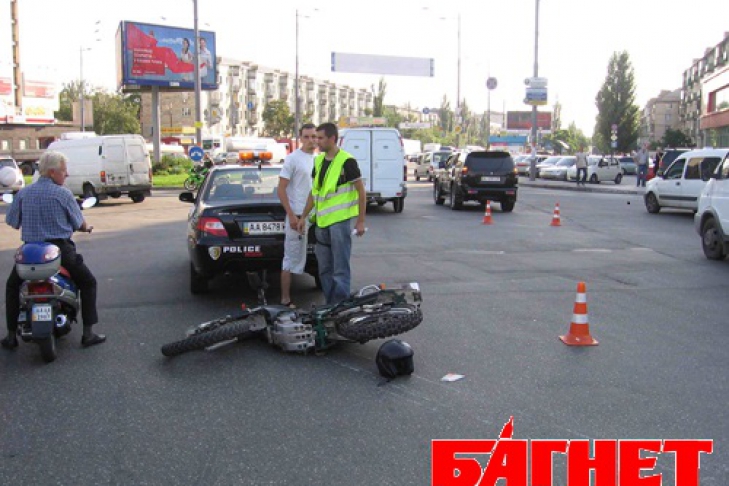Со слов очевидцев мотоцикл двигался от ул.Харьковское шоссе в направлении пр-кта Мира, джип в свою очередь от пр-кта Гагарина в сторону моста Патона. На перекрестке «Митсубиси» не уступил дорогу «Ямахе», для которой в свою очередь горел зеленый свет. Произощло столкновение, в результате которого мотоциклиста госпитализировали. Больше кроме железа никто не пострадал.