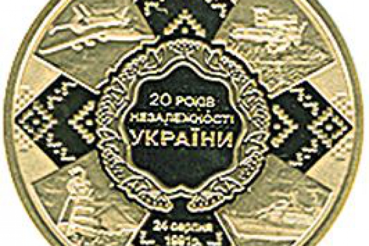 19 августа Нацбанк ввел в обращение три памятные монеты к 20-летию независимости: золотую 100-гривневку (Au900, вес 31,1 г), серебряную 50-гривневку (Ag999, вес 500 г) и пятерку из нейзильбера, сообщает пресс-служба НБУ.
