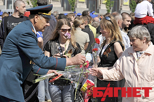 9 мая в столице царила праздничная атмосфера – молодежь не скупилась на слова благодарности и цветы для ветеранов