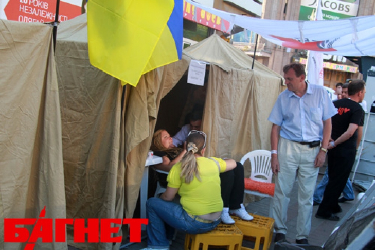 Члены Общевоинского союза Украины, руководимые экс-депутатом от ПР Олегом Калашниковым, по примеру своих политических противников из противоположного лагеря установили на месте своей акции около 20 палаток. Эти палатки, в отличие от палаток из лагеря оппозиции, лишены какой-либо политической символики, в том числе и общевойсковой организации.