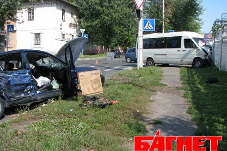 В субботу днем, 3 сентября, на перекрестке улиц Казачья и Сумская столкнулись маршрутный микроавтобус «Volkswagen LT» и «Volkswagen Passat». Как выяснилось, микроавтобус двигался по улице Сумской, которая является главной, слева от него по улице Казачьей двигался «Passat». Невзирая на знак «Уступить дорогу», водитель легковушки не пропустил микроавтобус, произошло столкновение. От удара в правый бок «Passat» рикошетом отбросило в осветительный столб, после чего развернуло на 180 градусов. Маршрутка же вылетела на тротуар и врезалась в бетонный забор. Обоих водителей и одного из пассажиров маршрутки госпитализировали с различными травмами. На месте работает оперативно-следственная группа.
