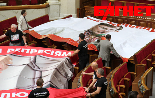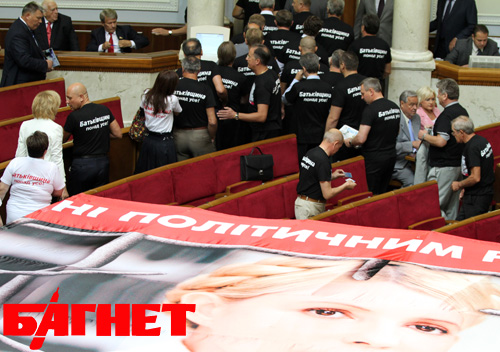 Воображение особенно потрясали многометровые транспаранты с изображением лидера БЮТ Юлии Тимошенко. Не менее красочно смотрелись и футболки народных депутатов: на груди – лицо экс-премьера.