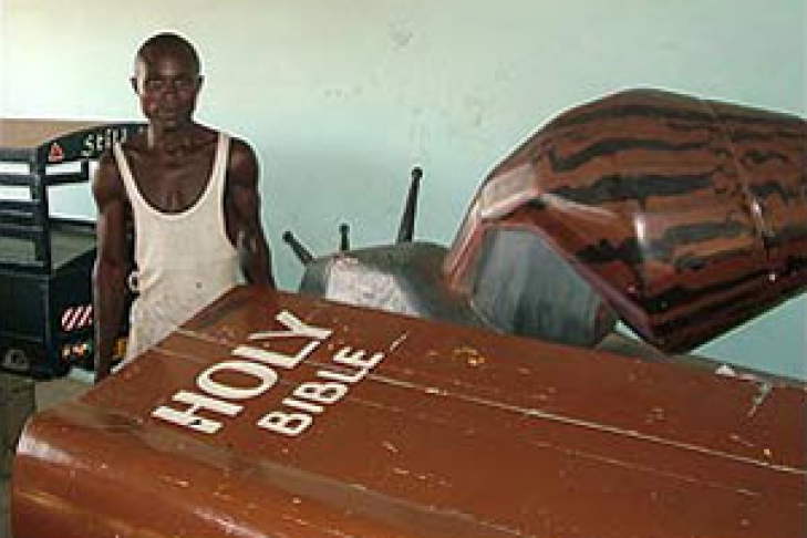 Paa Joe Works производит не просто гробы, а гробы в форме самых разнообразных предметов: самолета, льва, огурца, помидора, омара, ботинка, белого "мерседеса" и бутылки из-под кока-колы.