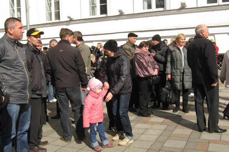 Собравшиеся ожидают допуска своих представителей в сессионный зал, чтобы те могли зачитать депутатам свои требования.