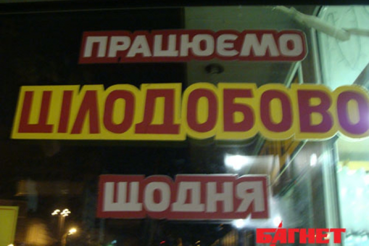 Офис-менеджер компании «Фудмаркет» объясняет, что увы, невозможно сделать работу супермаркета «Велика кишеня» на Печерской площади круглосуточной.