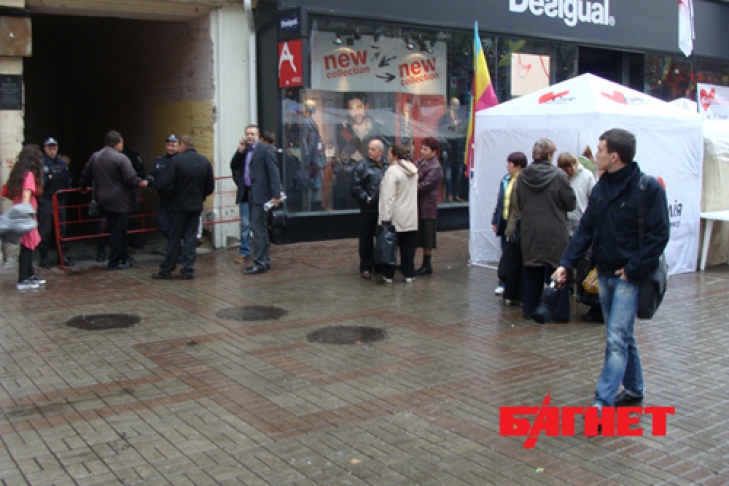 Теперь на месте бывшего «стойбища» членов «Общевоинского союза Украины» - типичная для центра города автостоянка на тротуаре. Лагерь оппозиции, как и обещали вчера его лидеры, остался на прежнем месте, однако уменьшился в размерах. Также убраны железные щиты, ограждавшие палаточный городок, демонтирована сцена, сняты висевшие на цепях колонки.