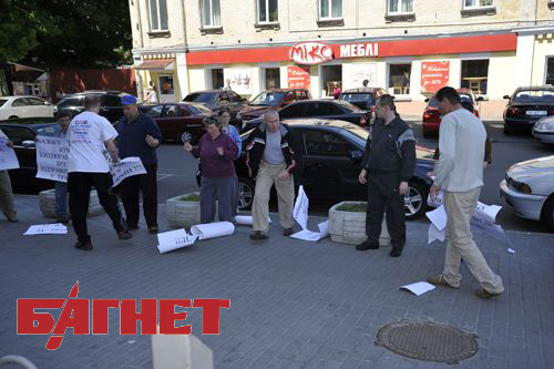 Плакаты красноречиво свидетельствовали о том, как на самом деле к Виктору Ивановичу относится народ: «Хабарника-корупціонера Балогу – до тюрми».