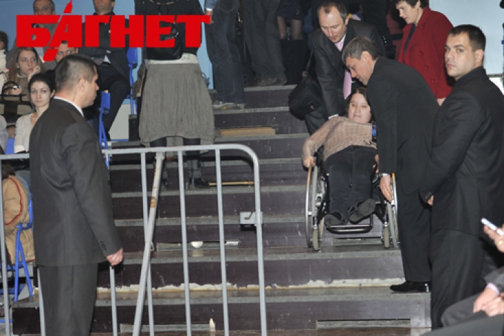 Еще один критический, по нашему мнению, момент – отсутствие специальных условий для людей с ограниченными возможностями. В частности, на ступеньках Дворца Спорта отсутствуют даже пандусы для инвалидных колясок, которые, как мы убедились, приходится поднимать на второй этаж и сносить в зал на руках. Так что посмотреть хоккейный поединок или концерт без посторонней помощи у людей с ограниченными возможностями не получится.