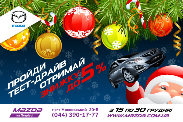 С 15 декабря в автосалоне «Mazdа на Петровке» стартует сезон новогодних тест драйвов и подарков!