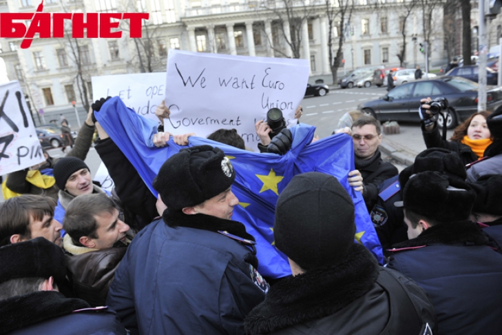 «Багнет» сегодня уже сообщал о том, что участников 15-го саммита Украина-Евросоюз встретили протестующие против политики нынешнего руководства Украины.