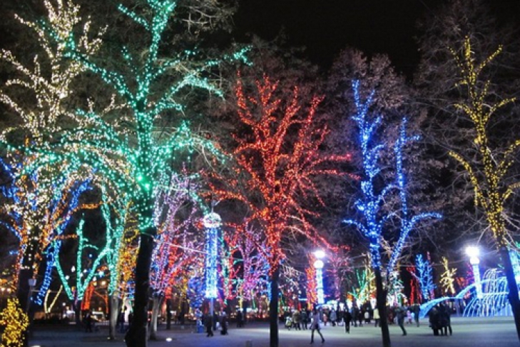 В Днепропетровске на деревьях развесили полмиллиона лампочек
