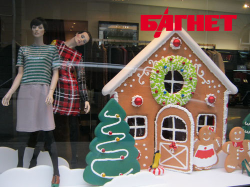Известно, что больше примерок будет у той модели, которая не просто висит на плечиках, а одета на манекен. Но что делать, если по соседству другой магазин, тоже торгующий кофтами и юбками, и который тоже нарядил пластмассовых мужчин и женщин? Проблему решают дизайнеры, которые создают неповторимые композиции и образы. Например, этот бутик женской одежды заманивает прохожих пряниками. Такое решение в оформлении витрины заслуживает первого места.