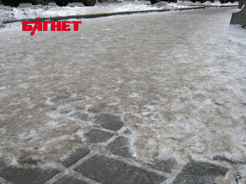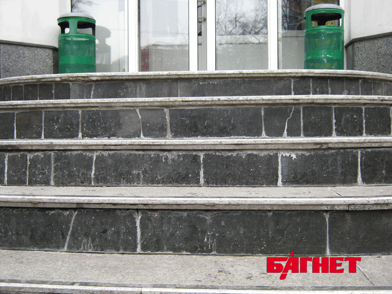 Отметим, что такую плитку можно увидеть в очень многих магазинах, банках и офисах столицы. Интересно, что она является скользкой не только зимой, а и в любое время года. При малейшем попадании воды на такую плитку покрытие превращается в настоящий каток.