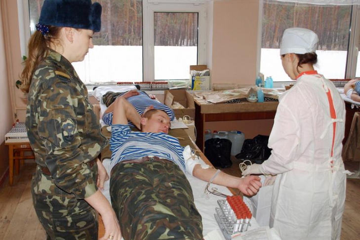 Каждый военнослужащий сдал от 200 до 400 миллилитров крови, после чего командованием части предоставило им время для восстановления сил.