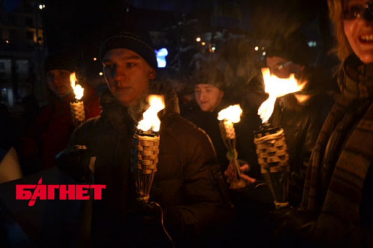 Почти тысяча человек выстроилась в колонну и, держа в руках зажженные факела, направилась к заводу «Арсенал» по улице Грушевского. Прохожие реагировали на марш по-разному. Некоторые ругали шедших по проезжей части «свободовцев». Но были и такие, кто присоединяется к идущим. Акцией руководил глава киевской городской организации «ВО «Свобода» Андрей Ильенко.